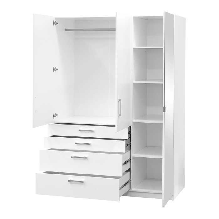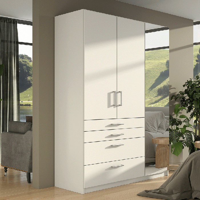 ELARIS 3 Door Mirrored Wardrobe with 4 Drawers White - 150cm