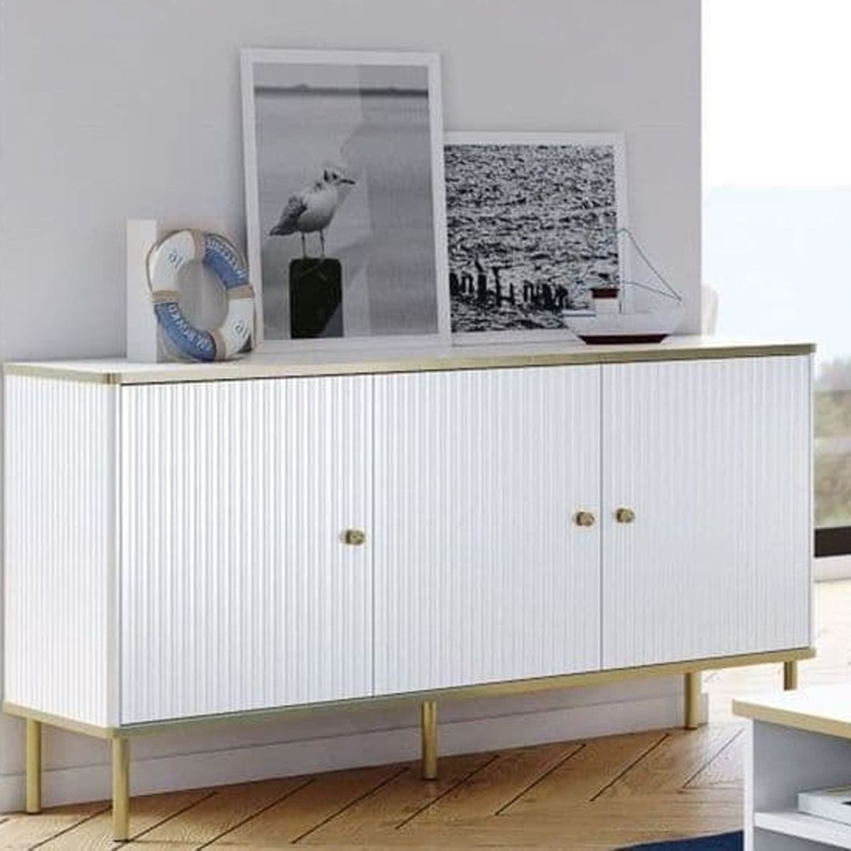 The luxurious Eldawy wide sideboard in white with gold detailing. This large sideboard features 3 doors and internal shelves.