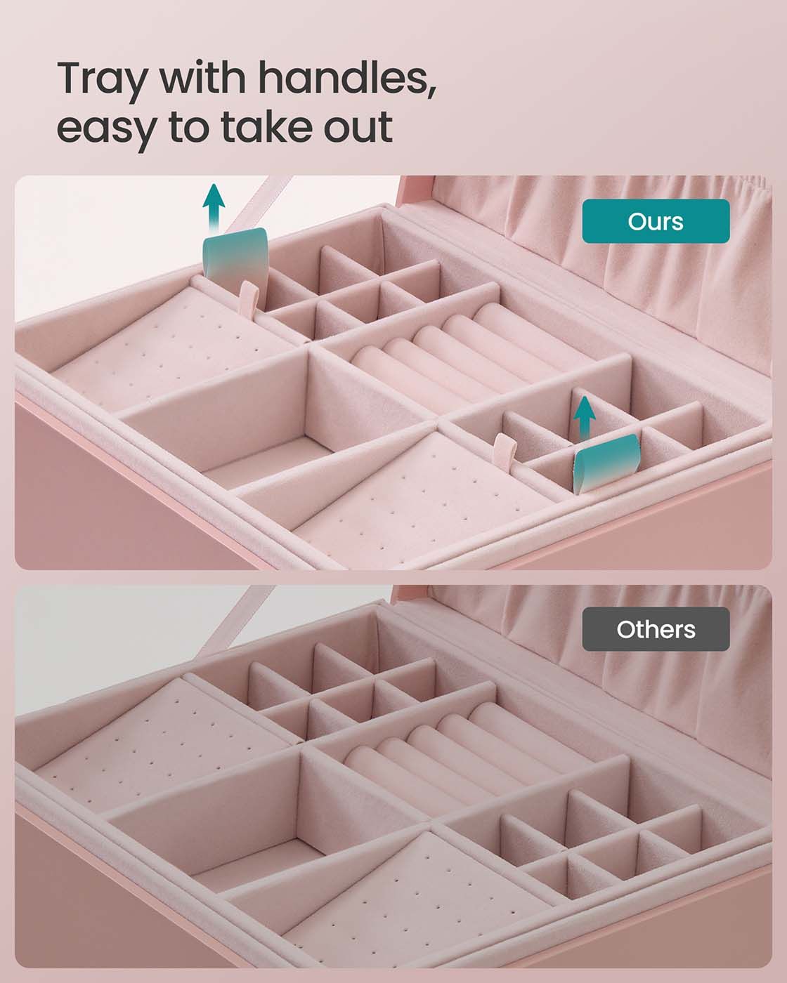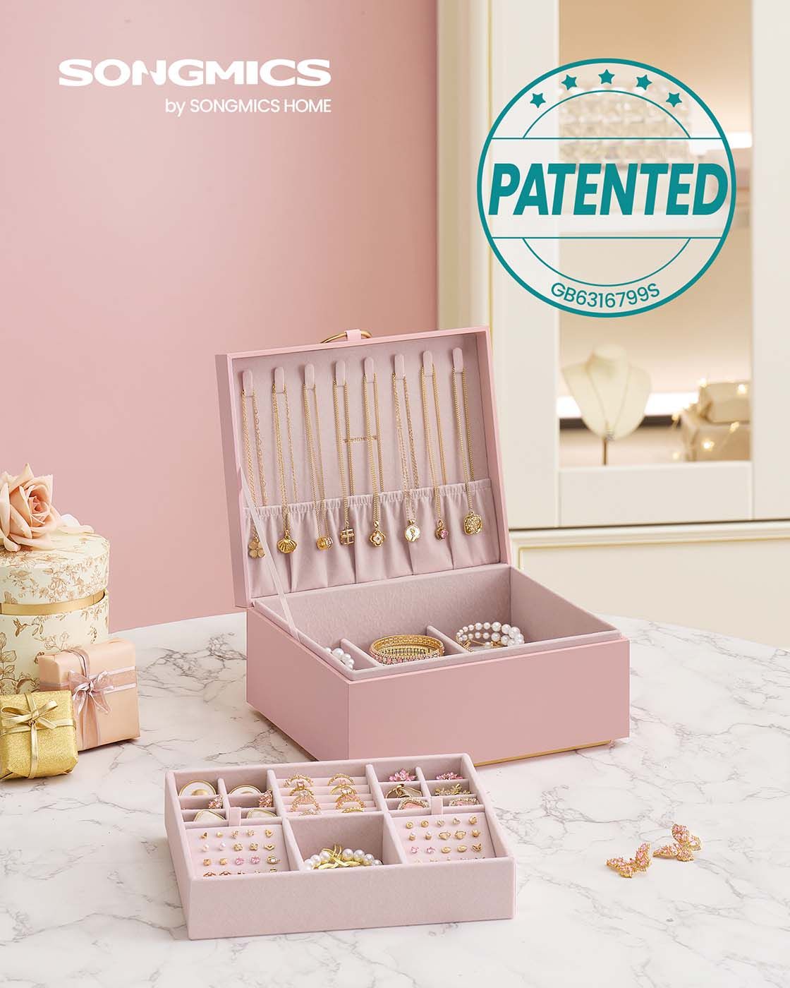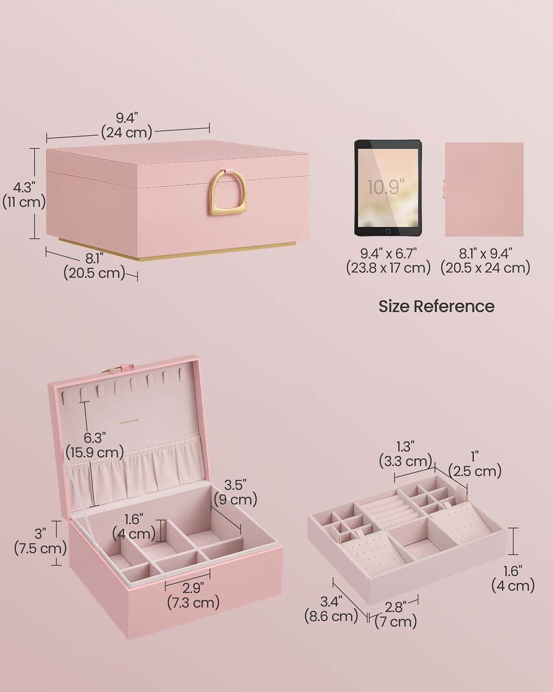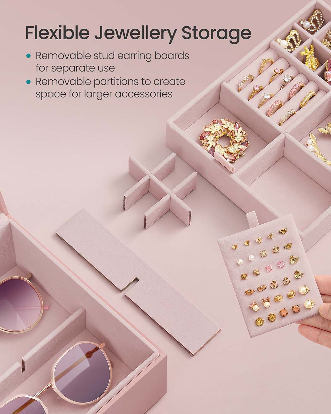 ELDERMOOR 2 Layer Jewellery Box with Handle and Removable Tray - Pink