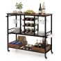 ELDWICKOR Bar Cart with 3 Tiers and Glass Racks-Rustic Brown