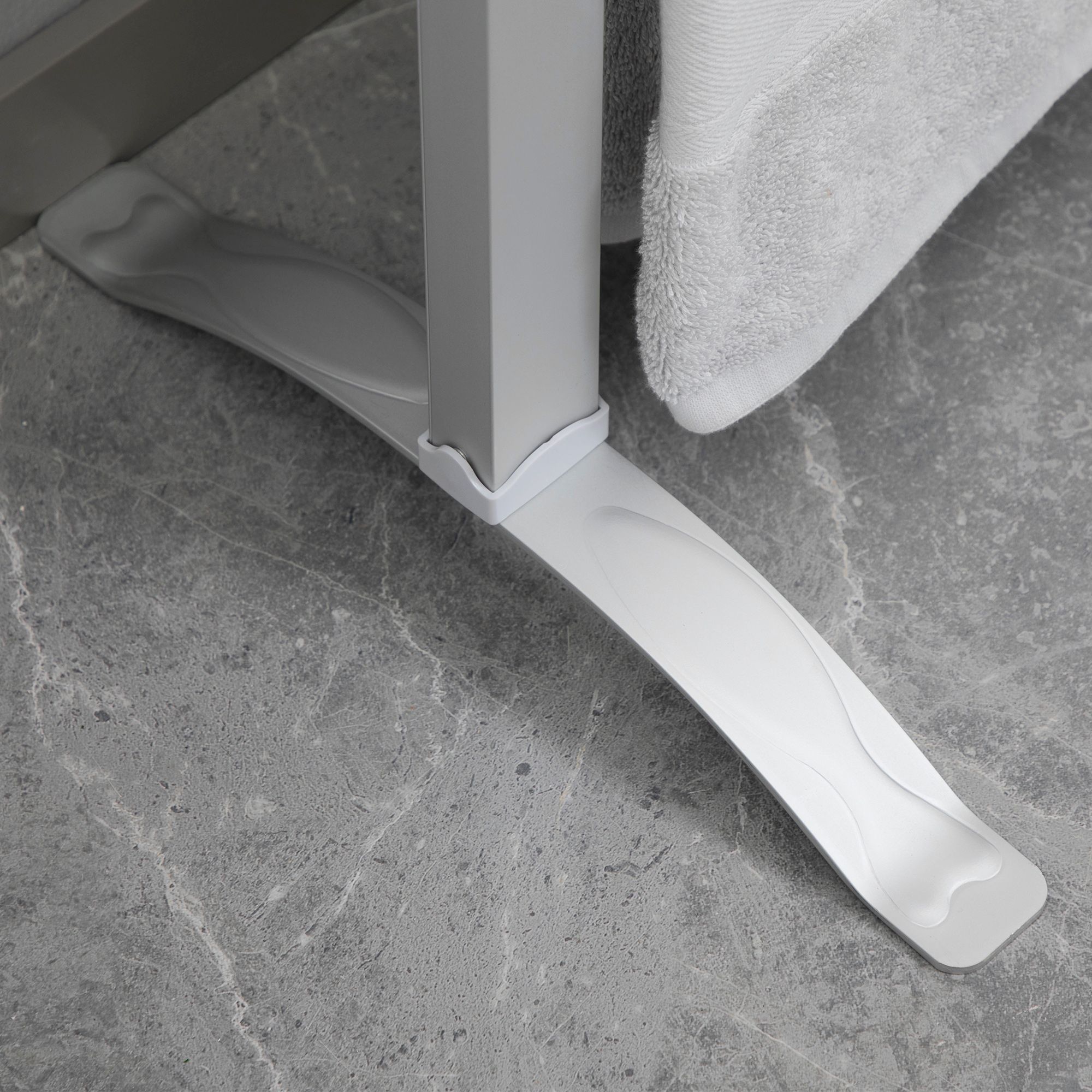 This electric towel rail warms towels, and keeps them warm for when you're ready. A freestanding and wall-mountable design, you can set it up to wherever you want. There's six rails, so there's plenty of space for you and the family. Made from aluminium for strength, it's IPX4 rated: safe against water splashing. Simply plug in and start enjoying warm towels and gowns.