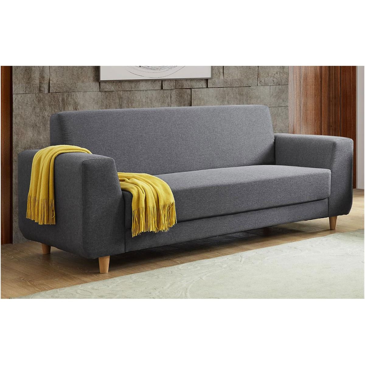 Elegance Redefined Hirwaun Fabric 3-Seater Sofa - Dark Grey