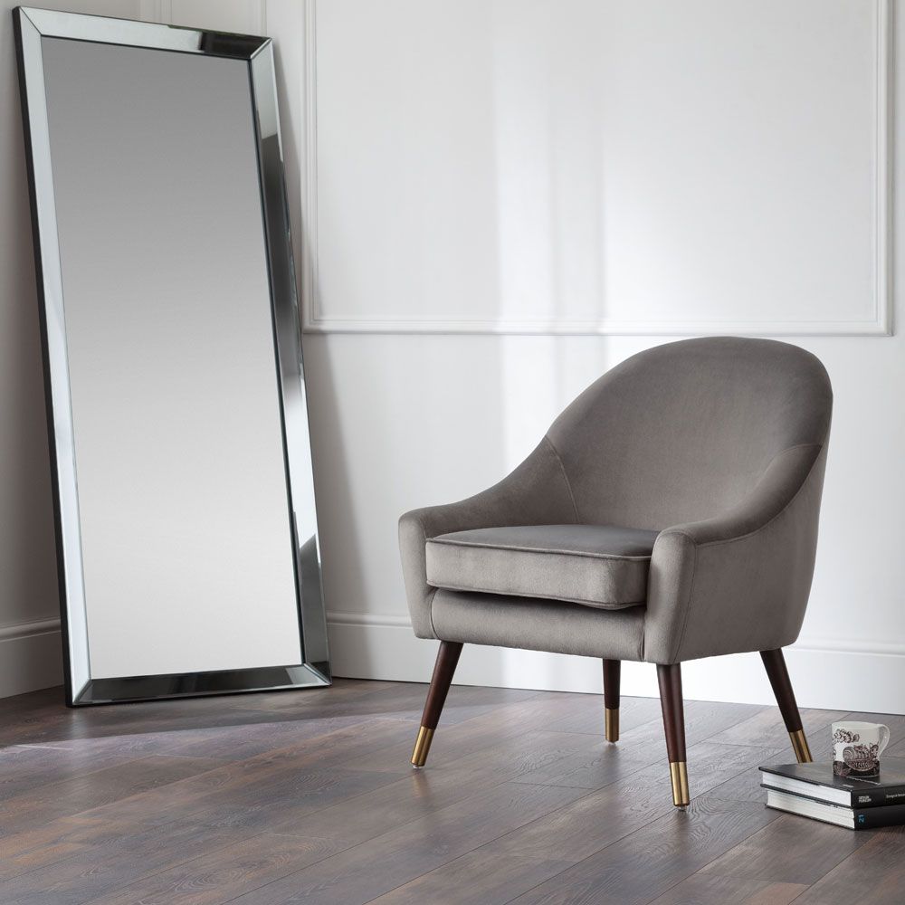 Elliot armchair combines high quality design with luxurious materials. Featuring beautifully curved arms and back upholstered in a chic grey velvet,