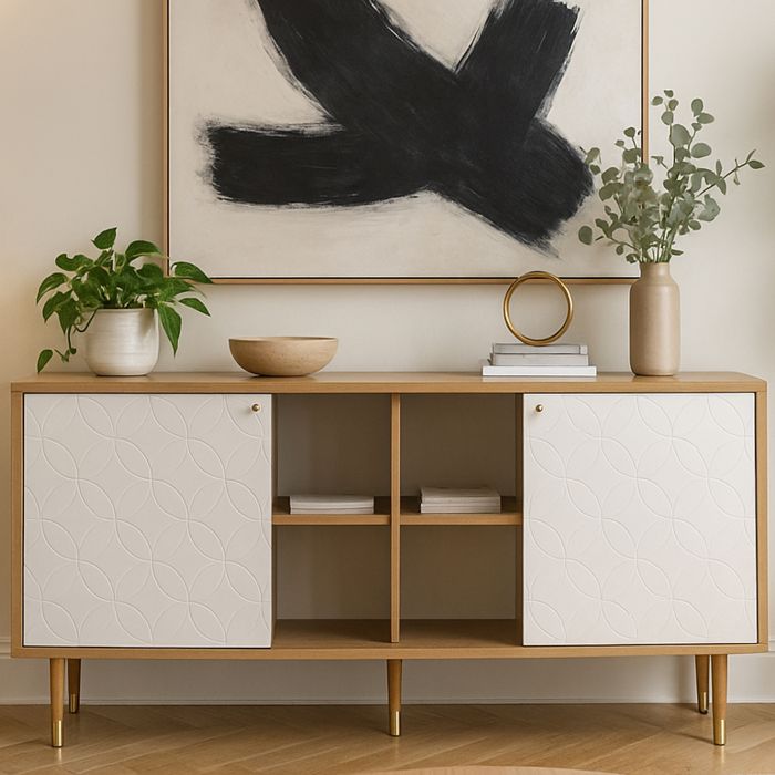 The ELMHURST Sideboard Oak White combines modern craftsmanship with a touch of traditional charm. Built to last and styled for versatility, it enhances any space effortlessly.