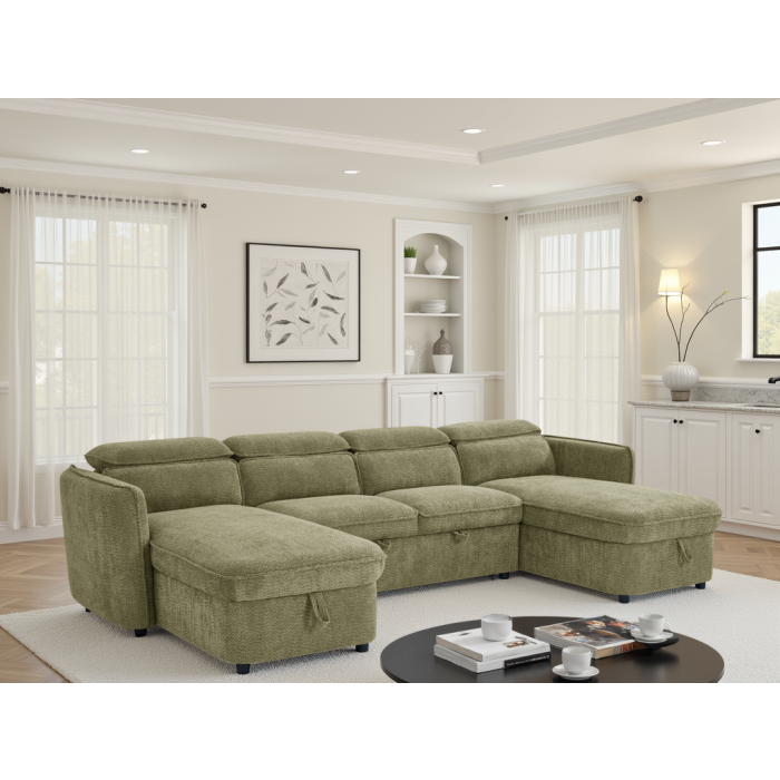 ELVAREN Fabric 4 Seater U Shaped Corner Sofabed - Green