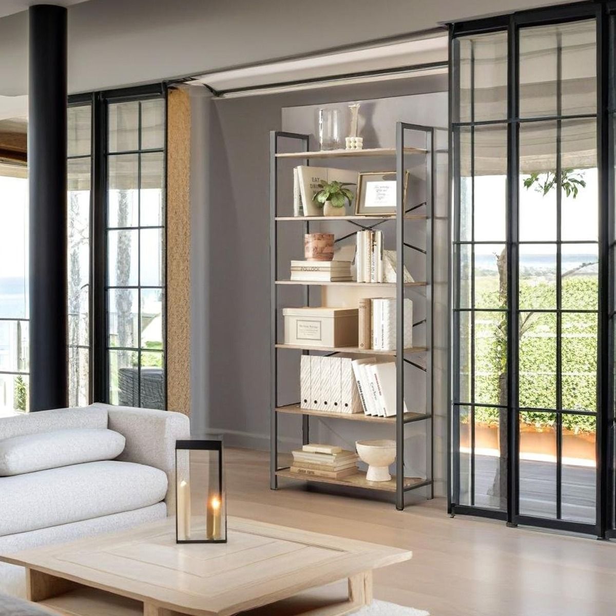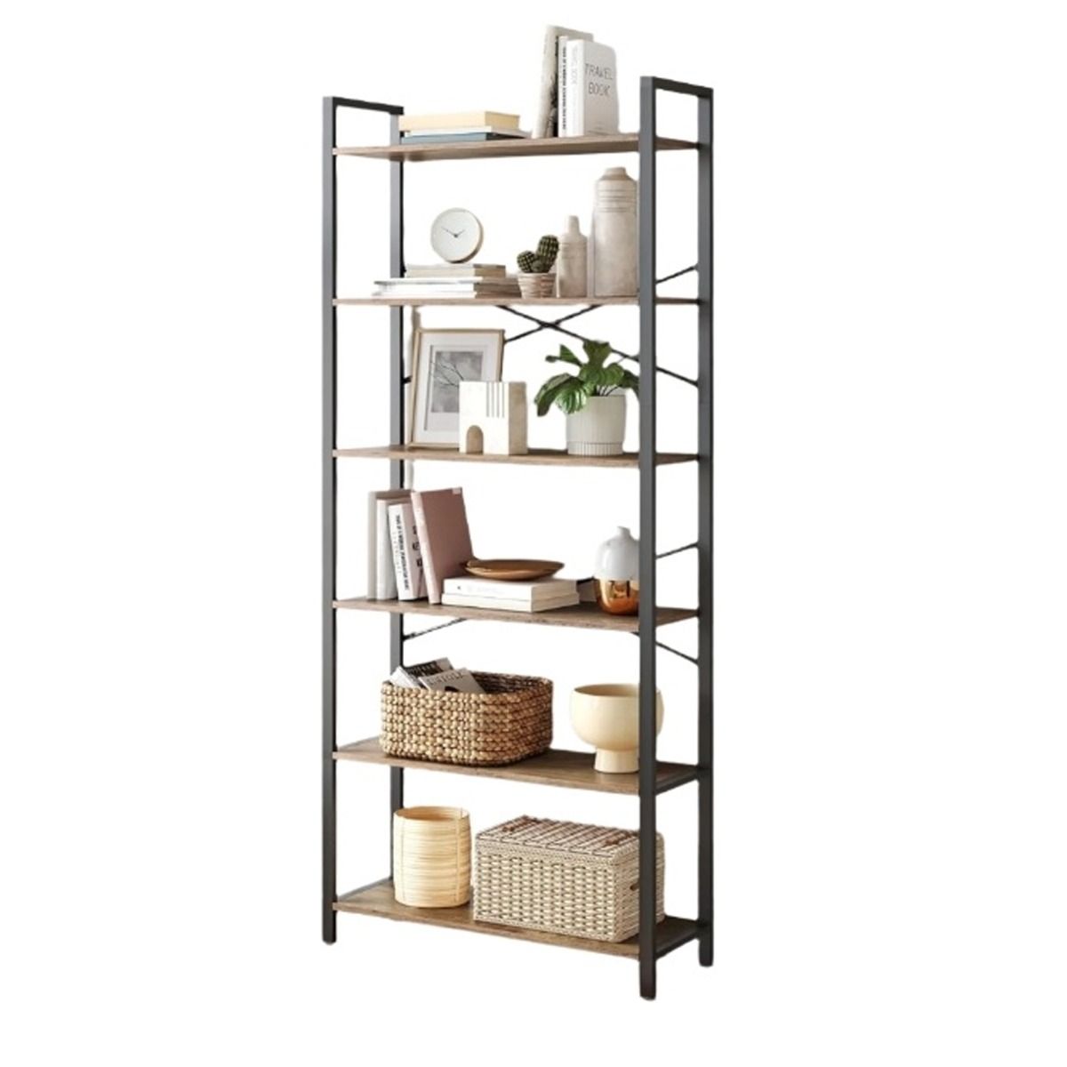 ELVARIS presents the 6-Tier Industrial Bookshelf with X-Brace, a tall and slim bookcase designed to combine functionality, durability, and contemporary industrial style. Crafted from high-quality engineered wood in a warm wheat brown finish and supported by a sturdy black steel frame, this bookshelf ensures long-lasting stability while adding a modern rustic charm to any space. Featuring six spacious shelves, it offers ample room to organize books, display décor, plants, or personal collections, while the X-brace design not only reinforces stability but also adds a striking visual element. Its vertical structure maximizes storage while occupying minimal floor space, making it ideal for living rooms, home offices, bedrooms, or studios. Easy to assemble with clear instructions, the ELVARIS 6-Tier Industrial Bookshelf with X-Brace is a versatile storage solution that enhances organization, showcases your items, and elevates the overall aesthetic of your interior with a bold industrial flair.