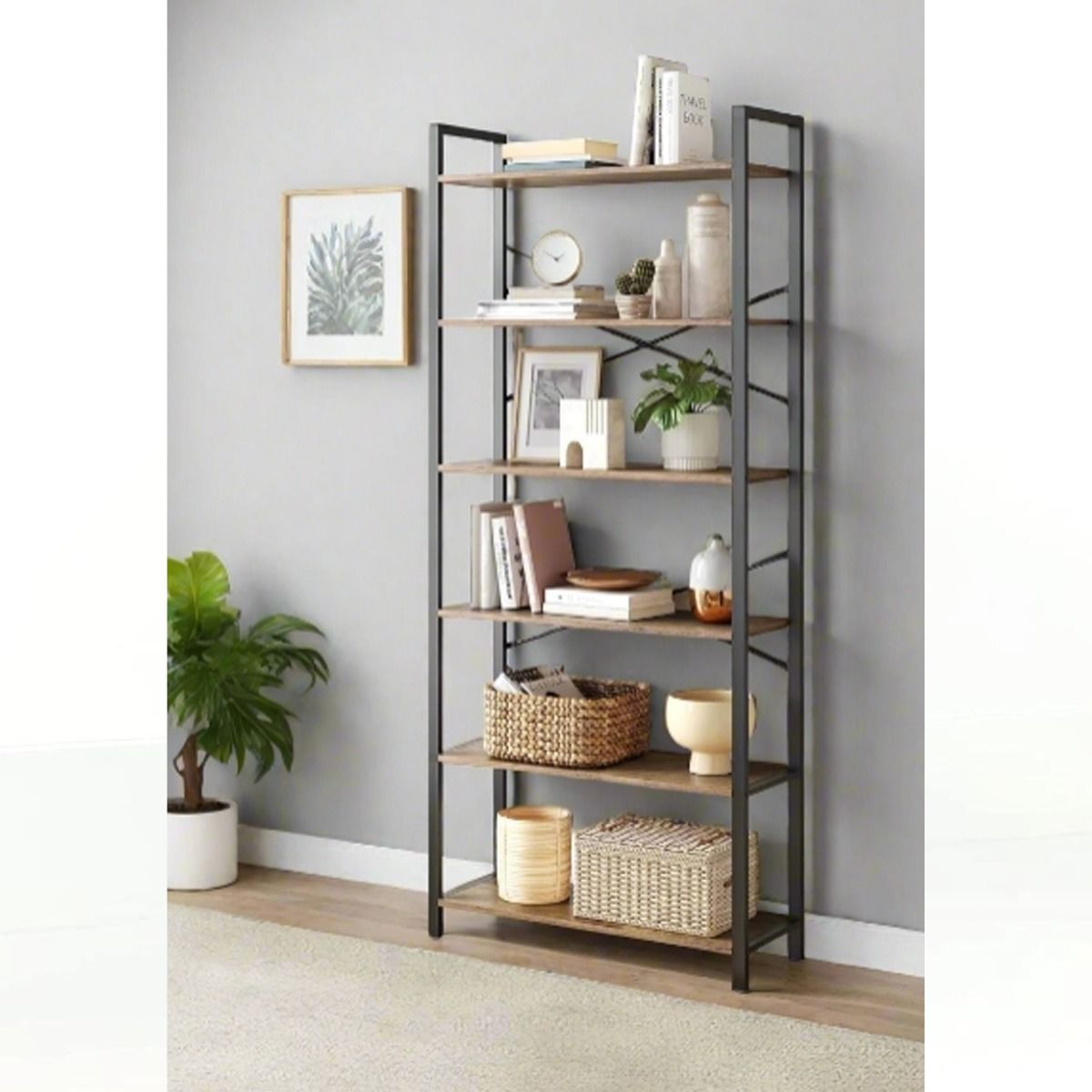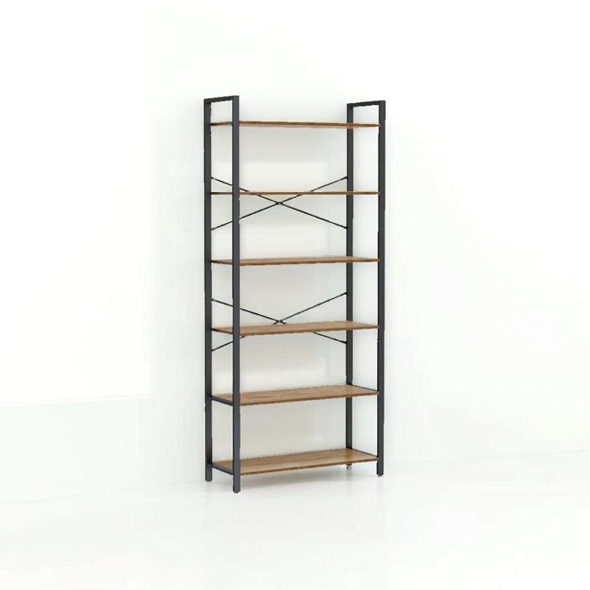 ELVARIS Bookshelf 6-Tier Slim Bookcase - Brown and Black