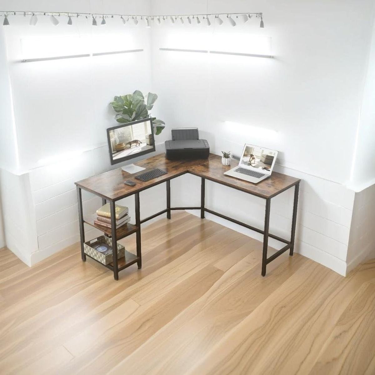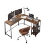 ELVARIS Computer Desk L-Shaped Desk with Storage Shelves - Brown and Black