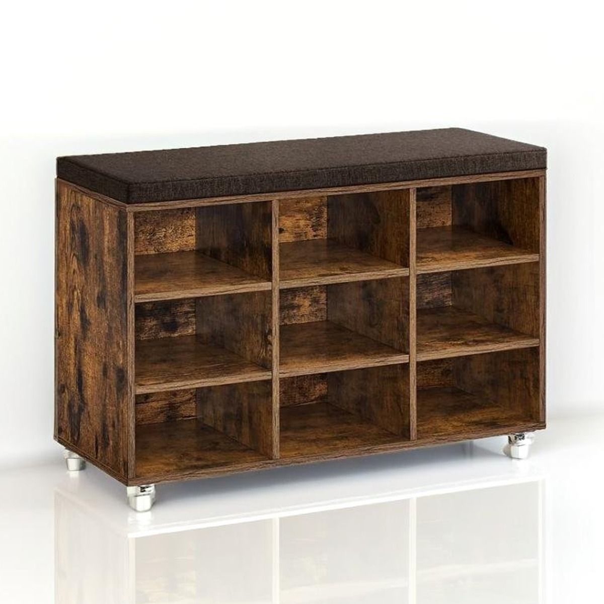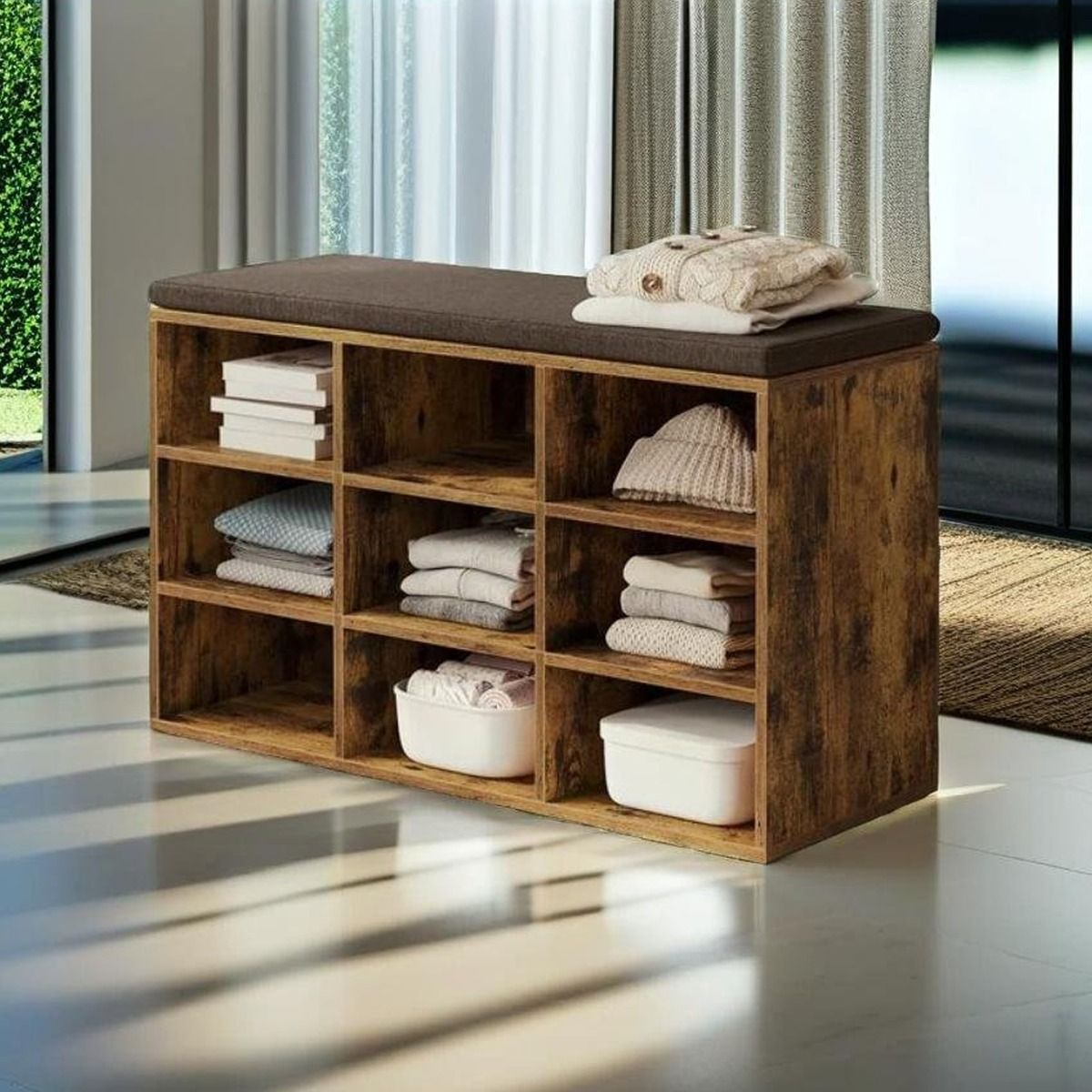 ELVARIS Shoe Storage Bench with Removable Cushion Seat - Rustic Brown