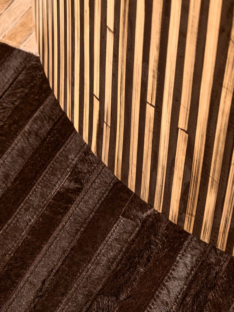 The ELVIORA coffee table has a bold vertical stripe pattern and smooth top, ideal as a stylish and functional centrepiece in modern living area.