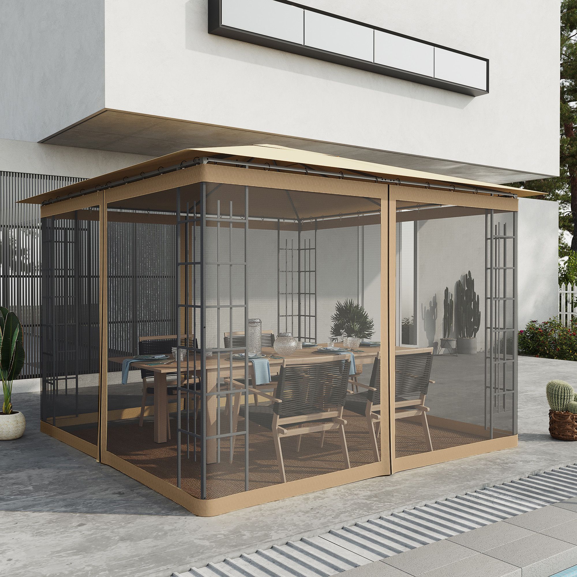 ELVORE Nylon Gazebo Sidewall Netting - Beige