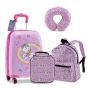 EMBERUNE 5 Piece Kids Luggage Set Carry-on Children Rolling Suitcase Set with Backpack-Purple