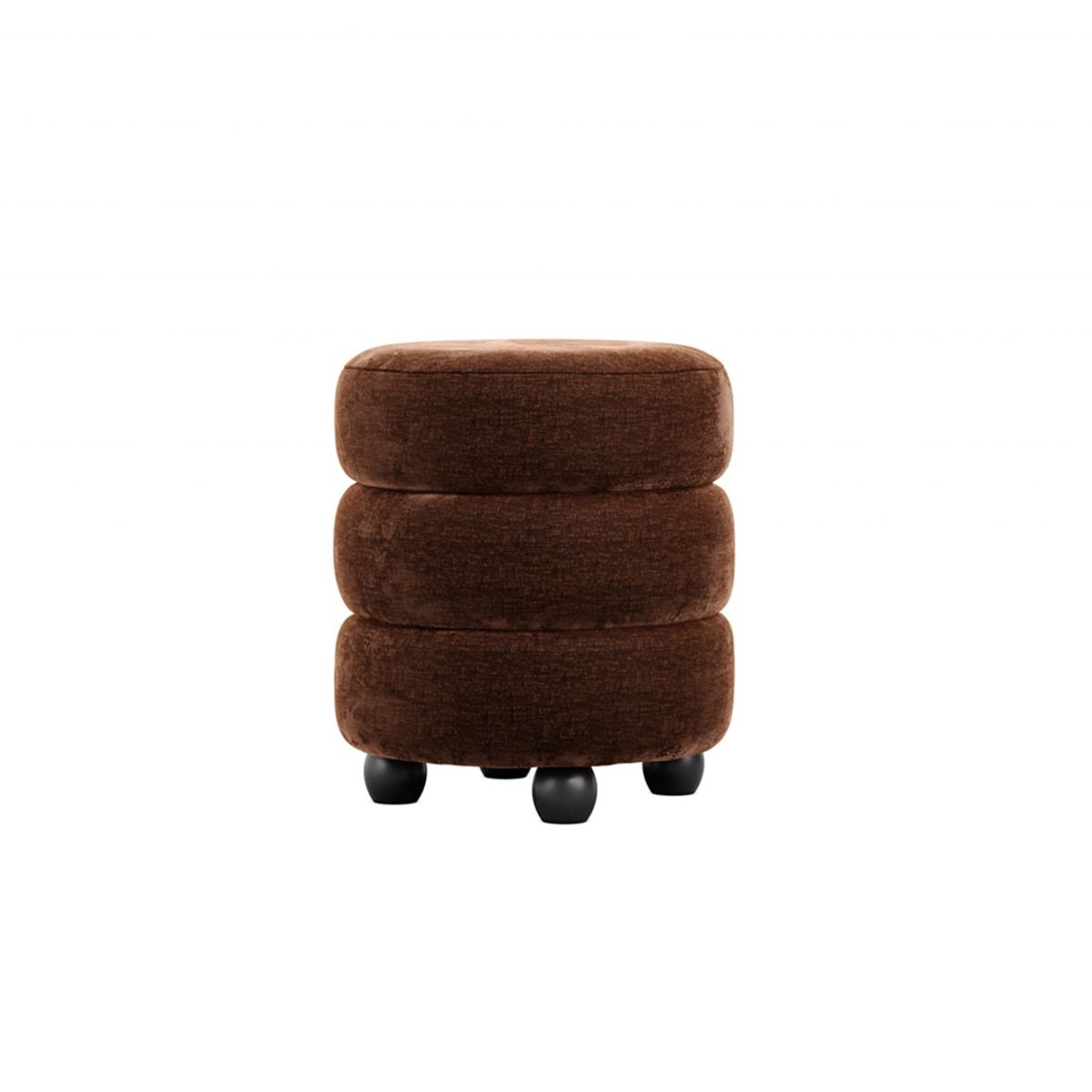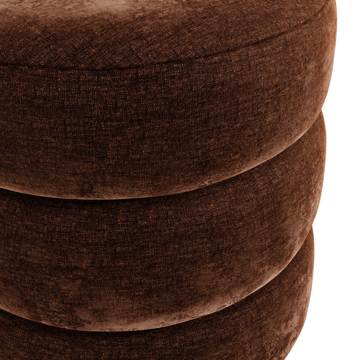 The ENA Pouffe in plush Brandy Chenille Velvet features curved lines and round black pine feet for a modern touch. Comfortable and versatile, it’s perfect for multi-use in any space.
