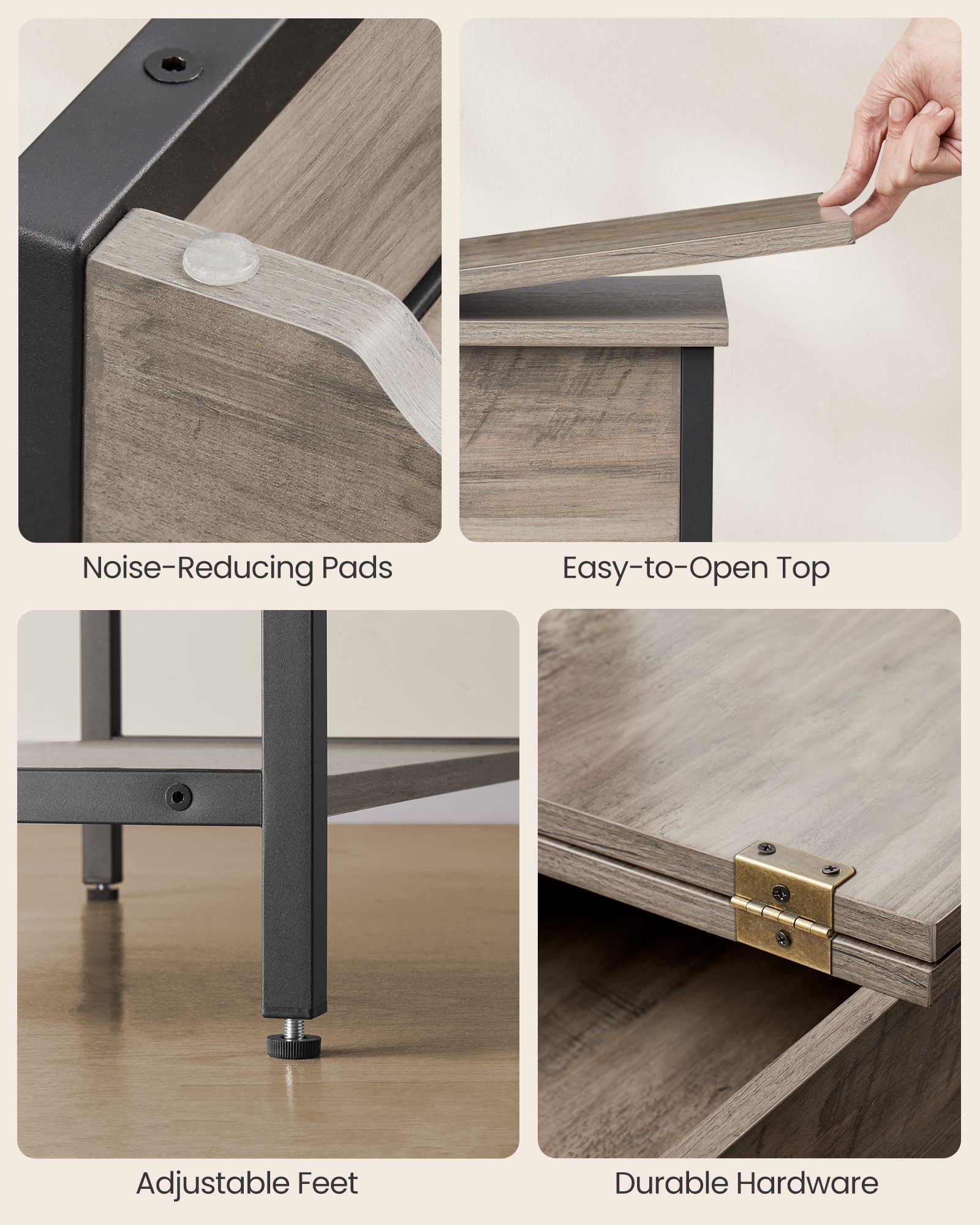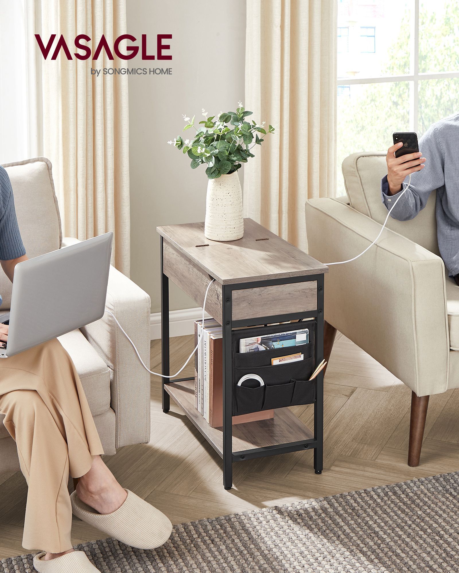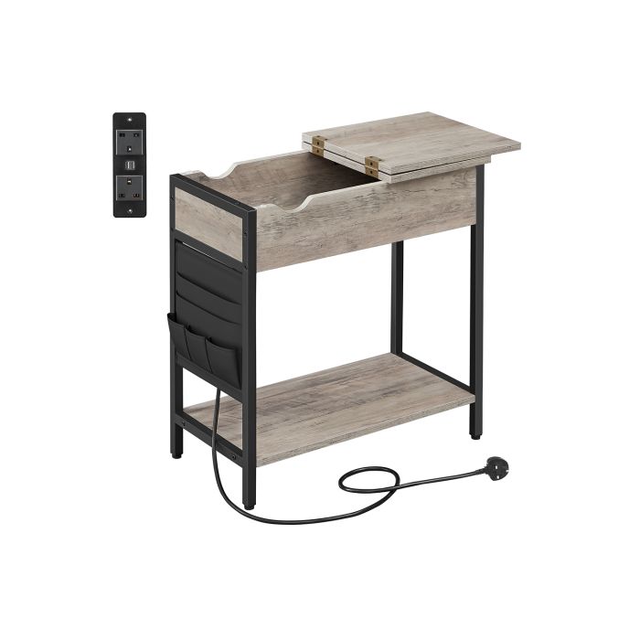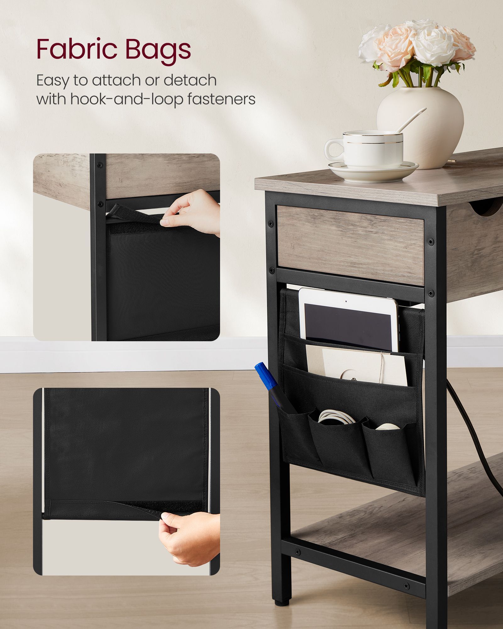 End Table - VIVNIA Storage Compartment Side Pocket - Light Grey