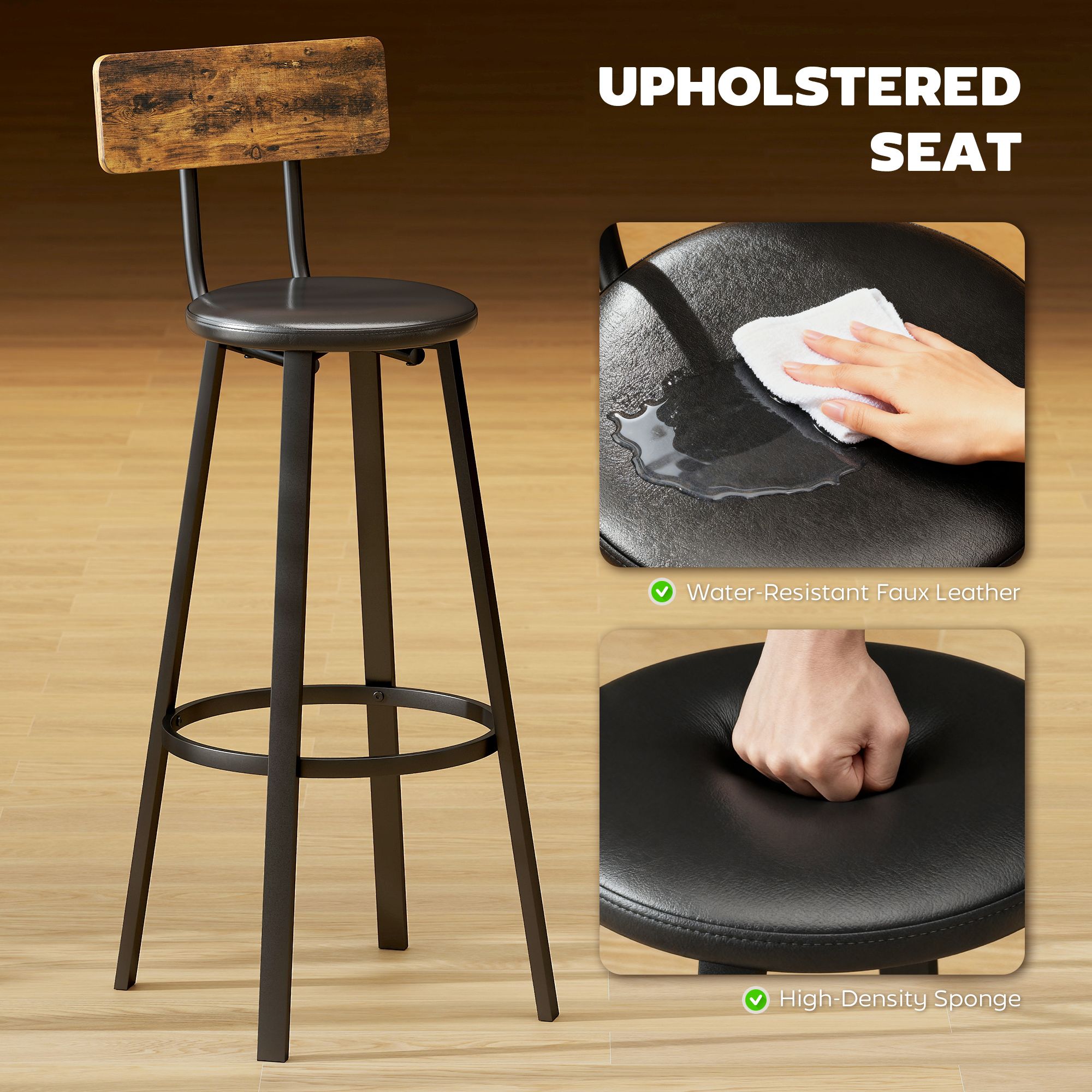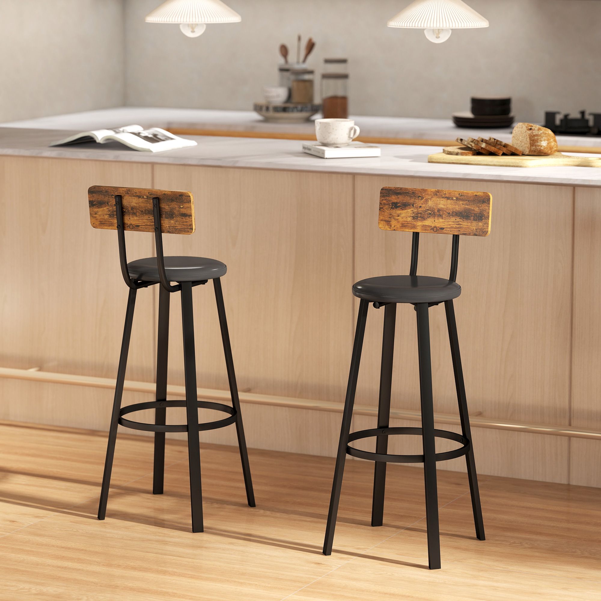 ENLORIA Faux Leather Bar Stools with Backrest and Footrest Set of 2 - Black