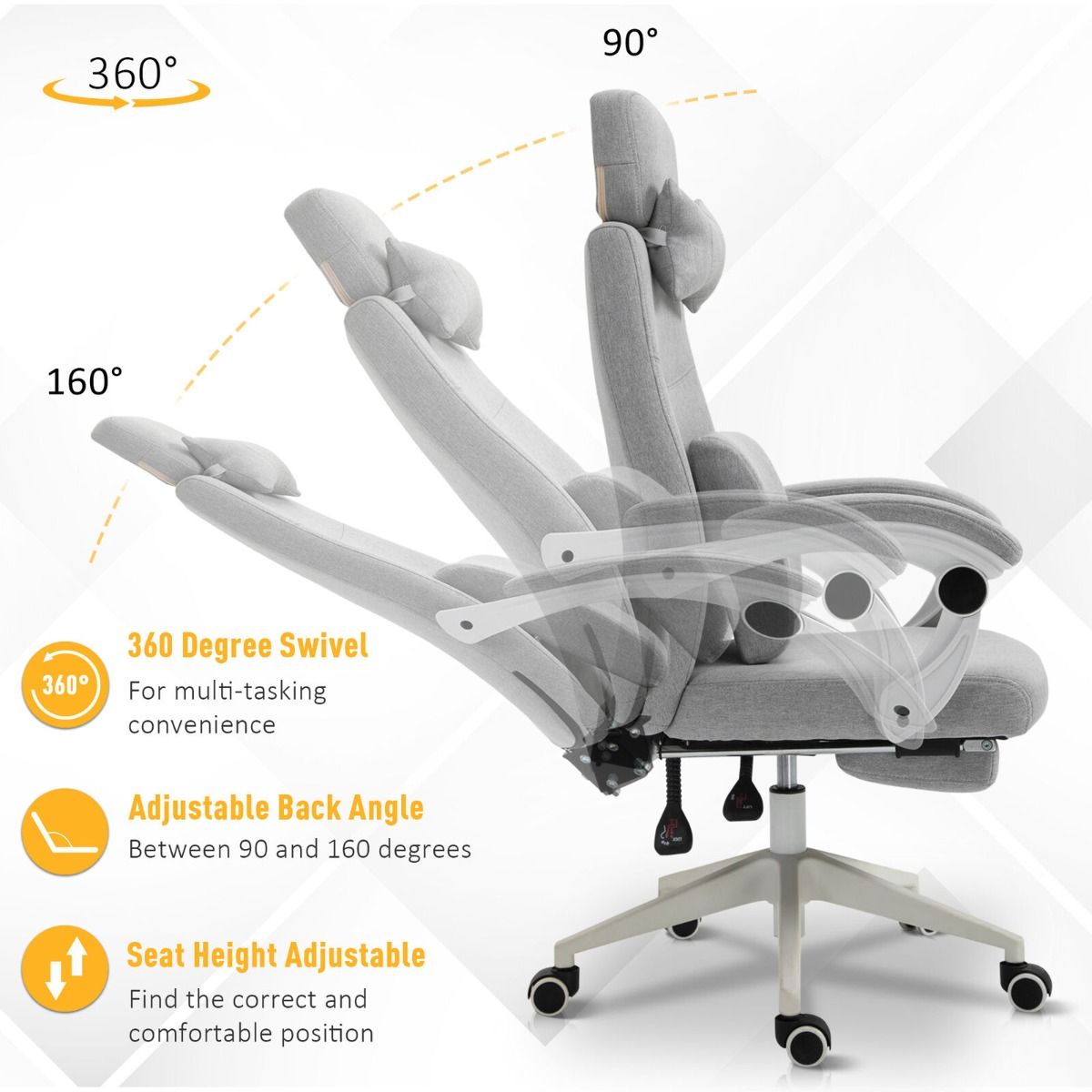 It's finished with fabric upholstery for a forever-stylish look and also comes with a large back pillow and small neck pillow. A great way to transform your everyday work life.