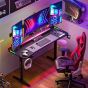 Ergonomic desk design with smooth surfaces and edges to provide comfort for extended competitive gaming sessions, it offers plenty of legroom so that you can sit comfortably with increased storage space, comes with a built-in headphone holder and cup holder, storage holder for organizing extension cord neatly. The gaming desk features RGB led lights on the top, which creates cool ambiance and greatly enhances your gaming experience, it has 5 lighting colors,1 RGB effect and 8 modes, easy to change them via the button, USB plug for power supply.