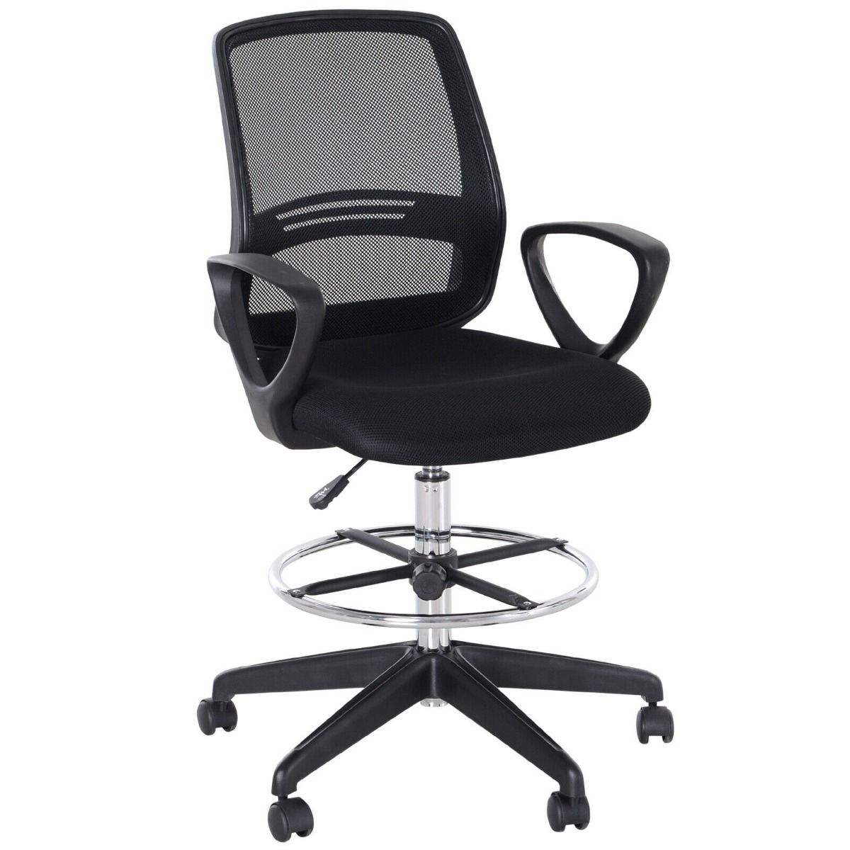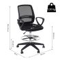 Featuring a comfortable, foam padded seat, curved mesh back, high-rise arms and a round metal foot rest to stop your legs from dangling. It’s finished with a 360º swivel base and five castor wheels to allow you to move the room freely and easily. No surface will be too tall to work from again.