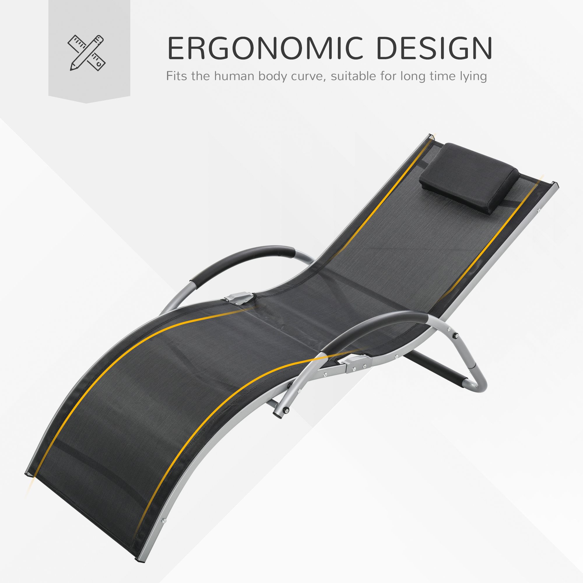 Ergonomic Lounger Chair Portable Armchair with Removable Headrest Pillow for Garden Patio Outside All Aluminium Frame Black