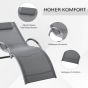 Ergonomic Lounger Chair Portable Armchair with Removable Headrest Pillow for Garden Patio Outside All Aluminium Frame Dark Grey