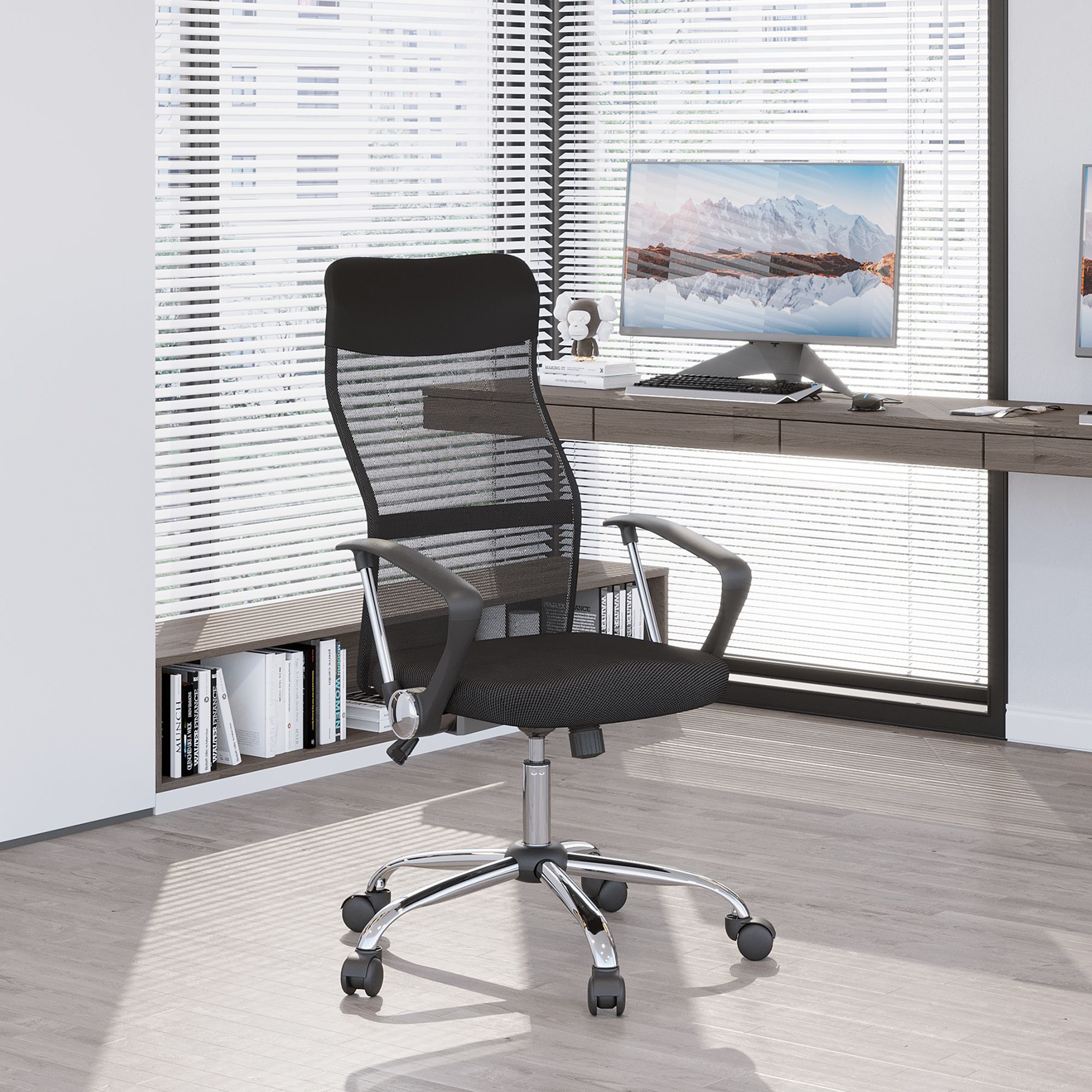 - Comfortable office chair: Thick sponge padding seat, high back and armrests, swivel seat and adjustable height - this computer chair keeps you comfortable and supported.