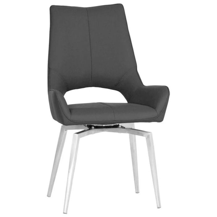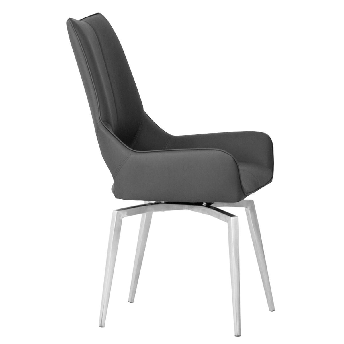 Ergonomically Designed Chrome Legs Sprung Swivel Dining Chair - Dark Grey