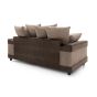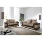 A 3 and 2 seater combination sofa set with an incredible price tag. The Eritrea embraces a two-toned style with its accent lines that match mix and match scatter back cushions. Enjoy the extra wide arm rests, the deep-filled fibre back and seats and sofas constructed on a solid wood base. Built to last. Choice of upholstery is a hybrid fabric that uses structured cord chenille and high end faux suede leather, to give you sophisticated style at an uncomplicated price. Available in a conservative black and grey colour combination and also a bolder brown and beige combination.