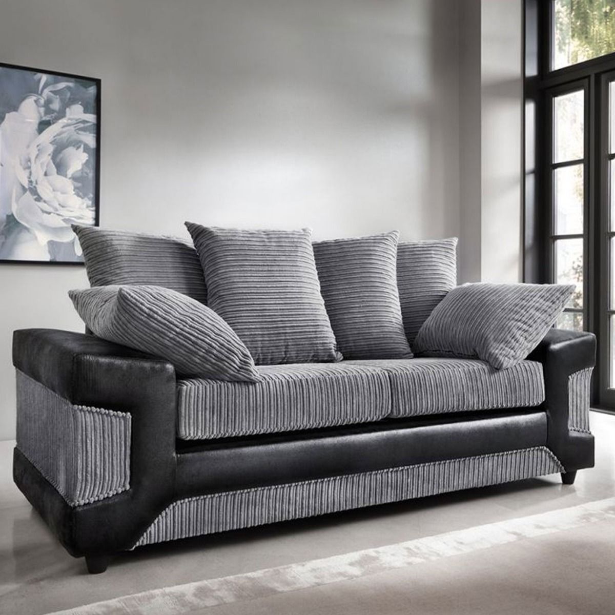 The Eritrea 3 seater! A bold sofa that can engulf you in delicate comfort, all for an incredible price. Sink into deep-foam filled cushions upholstered in a luxuriously soft hybrid fabric. Choice of fabric is a mix of soft structured cord chenille and faux suede leather. Combine with another Eritrea sofa, chair or footstool and you have a sofa set that will make you house proud. Available in a warm black and grey combination and also a sprightly brown and beige colour combination.