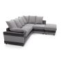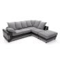 A stunning chenille corner sofa. Enjoy extra wide arm rests, deep-filled back and seat cushions and a bold yet understated style statement from this corner sofa. Throw in a Eritrea footstool at the end of the sofa’s chaise and you might just have a makeshift bed in your home! Feel the softness of soft structured cord chenille fabric while the combination faux suede leather lends opulence and class to this corner sofa. Available in an earthy black and grey colour combination and also in a more adventurous brown and beige pairing.