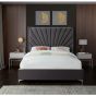 This is an amazing and quality bed frame, with a detailed finish to the headboard. Featuring chunky upholstered panels, a deep foam padded headboard and hand carved with stylish metal feet. Quality solid straight slats improve comfort and mattress lifespan. The slats are manufactured with a solid construction for superb durability. The headboard features a contemporary cross design with deep padding and plush fabric. The bed is upholstered in a choice of amazing colours with options to suit all decors. The design is finished off with stylish chrome metal feet feet which have been carefully constructed.
