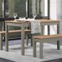 The Ethans table showcases a practical plank top design, while the bench and chairs offer comfortable seating solutions. The ladder back chairs provide excellent support with their classic design, and the bench is perfect for flexible seating arrangements. This set is easy to assemble with steel assembly bolts and Allen key fittings, making it a practical and stylish choice for any home.