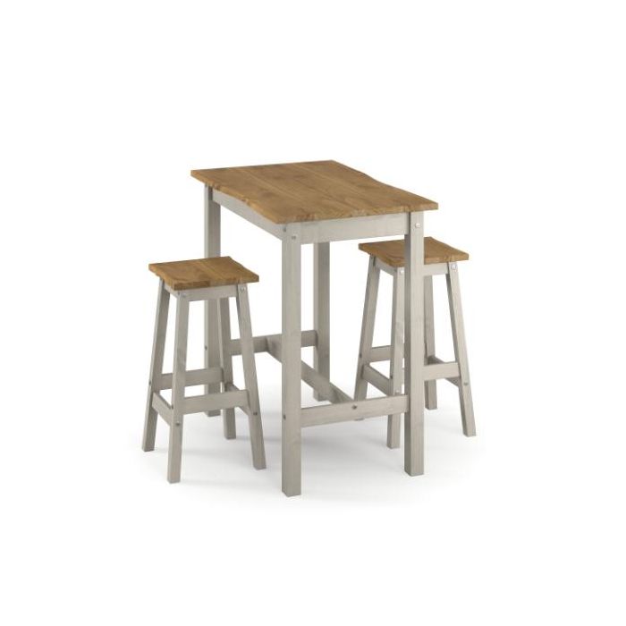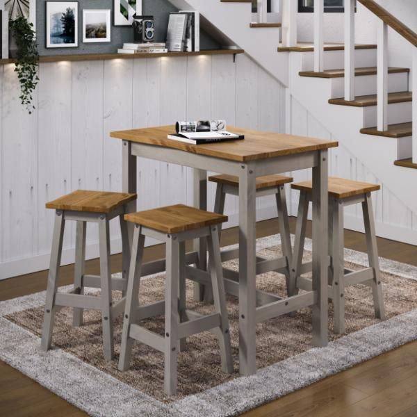 Introducing the Ethans range from Home Done, designed for dining areas where space is at a premium. This large rectangular high breakfast bar and pair of bar stools set is crafted from responsibly sourced pine and finished in a contrasting grey wax and antique wax, providing a fresh, modern look to a classic design. The rustic live natural edge on the table and seat pads adds unique character to any room. This set is not only stylish but also practical, with easy-to-clean surfaces and sturdy construction. Ideal for compact spaces, the Ethans range combines timeless design with modern functionality, making it a standout addition to your home. Additional stools can be purchased to expand your seating options.