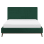 This modern bed is an ideal fit for a bedroom which aims for a perfect balance between elegance and simplicity. With a quilted headboard in a rectangular shape, and all sides featuring a soft, easy-care fabric in green, it looks outstanding in any type of setting. Wooden construction ensures long-term stability, while the stylish legs, made of dark wood, beautifully harmonise with the whole piece.