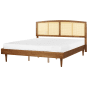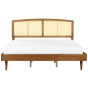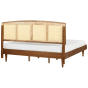 This bed frame is going to guarantee you a good night sleep, while also refreshing the look of your bedroom. Crafted out of high-quality rubberwood, the bed is very durable, sturdy and low maintenance. It comes with an attention drawing headboard, adorned with a Viennese braid pattern. What is more, the headboard is adjustable, so you can quickly change its height. Due to included LED stripes, you can illuminate your bedroom with a strong glow. Details: Color: Light Wood. Main material: Rubberwood. Additional material: Rattan. Weight: 50 Assembly: Full Assembly Required Wood type: Hevea brasiliensis Wood Origin: Malaysia Weight Capacity: 300 Legs Height: 23 Sleeping Surface: 180x200