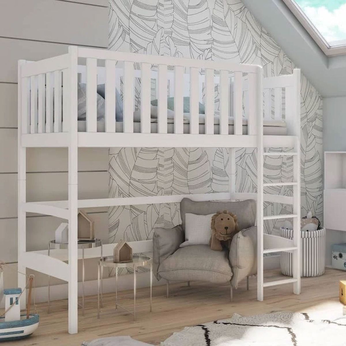 Introducing the Everett Felix Wooden Loft Bed Frame—a sanctuary of style, safety, and durability for your child's room. Crafted from solid pine wood, this loft bed frame boasts a robust and timeless design. The included slatted bed base, also made of pine wood, ensures reliable support for a comfortable night's sleep. Painted with a three-layered spray of water-based paint, it prioritizes your child's health by avoiding harmful solvents. Choose the Everett Felix Loft Bed for a secure, stylish, and cozy sleep environment that blends seamlessly with any room decor.