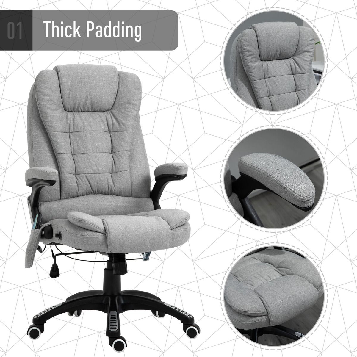 Let any aches or pains melt away as you sink into this luxurious massage chair. 6 massage points and heating function, extra thick padding and linen upholstery, making it the perfect spot to immerse yourself for a few hours. It’s ergonomic too.