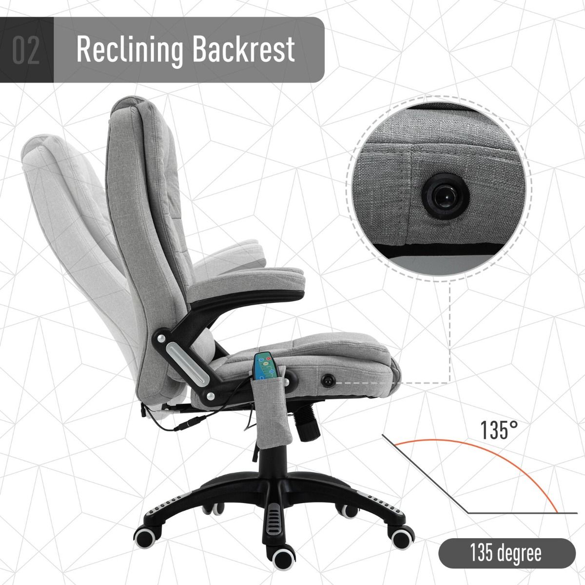 Executive Ergonomic Design Reclining Chair With 6 Massage Points - Light Grey