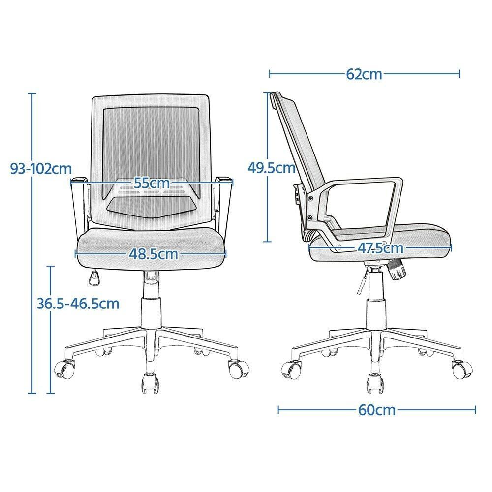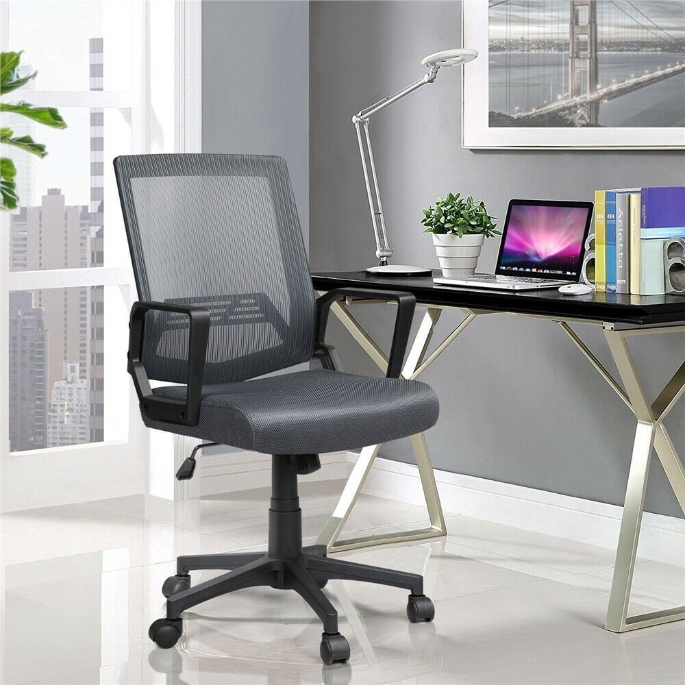A good office chair can be beneficial to a productive workday. Our 360° swivel ergonomic mid-back chair is your most cost-effective choice for office and home. Soft sponge padded seat and breathable mesh backrest give you a cool and comfy seating experience even during the hot weather. Curved backrest can reduce your back fatigue after long-time sitting. Adjustable seat height to your variable needs. Five wheels can be rotated and rolled in all directions, which is convenient for multitasking. Tilting design helps you recline for better relaxation after the hard work. This durable and sturdy mesh chair is ready for your long-term use.
