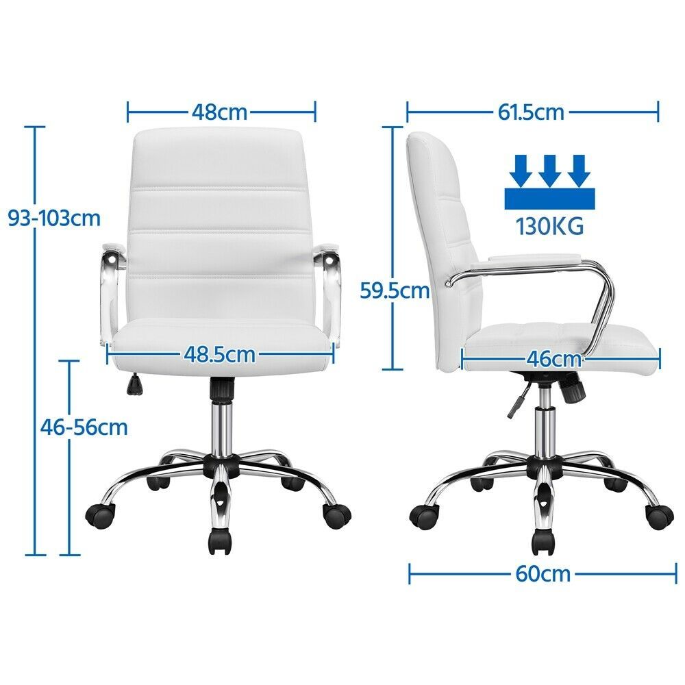 This a comfortable office chair is fundamental for a productive workday. A desk chair like this is an ideal option for getting comfy sitting experience, while also introducing an on-trend contemporary look. We apply quality PU leather upholstered fire retardant foam cushioning for the seat and back, and corrosion-resistant chrome-plated steel for the arm and star base. Twisting and turning about is integral within the office and best optimal desk use. The 360° swivel seat and wheels of this mid-back office chair ensure the must-have mobility. And with the tilt-lock mechanism and seat height adjustment, you can customize your seat to your preference.