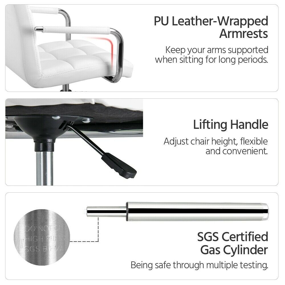 Make your sitting comfortable with this Yaheetech comfy computer chair! It provides you with a best budget-friendly seating solution.This is an ideal home/office work chair, it boasts safe height adjustments, 360° swivel seat/wheels, a heavy duty base, solid yet healthy padding, stylish PU texture and more. You can also turn it into a bar stool by taking off the armrests. Pretty magic