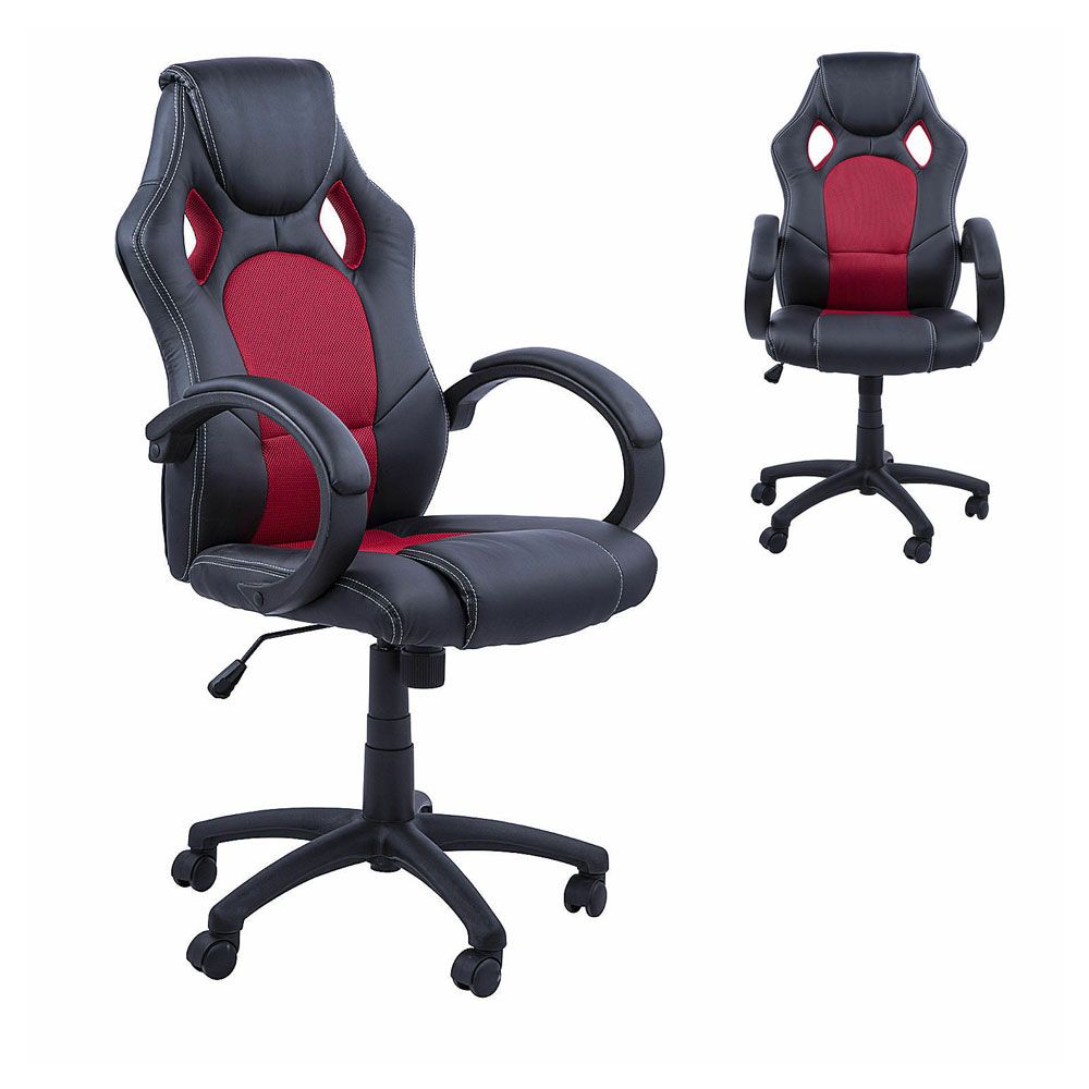 This office racing chair has the the styling of a sports car seat with the functions of an office chair. It features ergonomically-designed added back support, adjustable height, tilt mechanism and 360 degree swivel motion, which provides you with a perfectly comfortable working or gaming position.