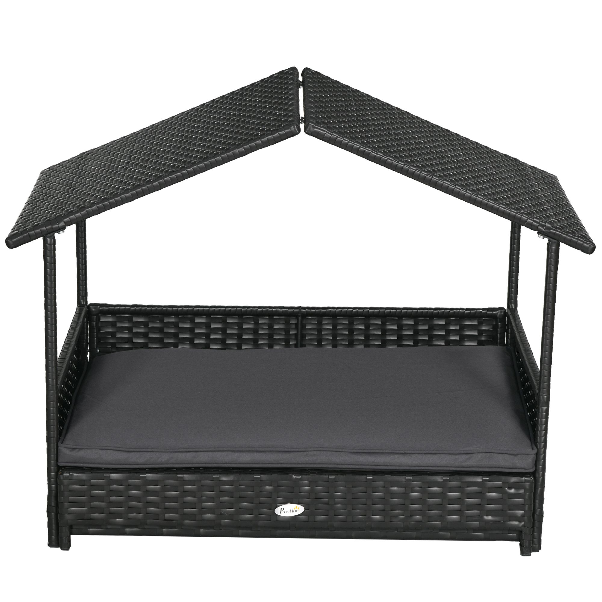 Extendable Elevated Dog Bed, Rattan Dog House w/ Water-Resistant Roof, Removable Cushion, for Small, Medium Dogs - Grey