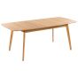 This extanding dining table in light wood colour and minimalistic design is set to become a timeless piece in your dining room. The table top is constructed using engineered wood, which is exceptionally durable and is additionally veneered for an exquisite look that keeps quality even after prolonged usage. Rubberwood legs complement the table, providing great stability. Excellent design makes the table suitable for a wide range of interior styles - from traditional through to contemporary or Scandinavian. Details: Color: Light Wood. Main material: MDF. Additional material: Rubberwood. Weight: 32 Capacity: 6 People Assembly: Partial Assembly Required Wood type: Hevea brasiliensis Wood Origin: Malaysia Weight Capacity: 80 Legs Height: 64