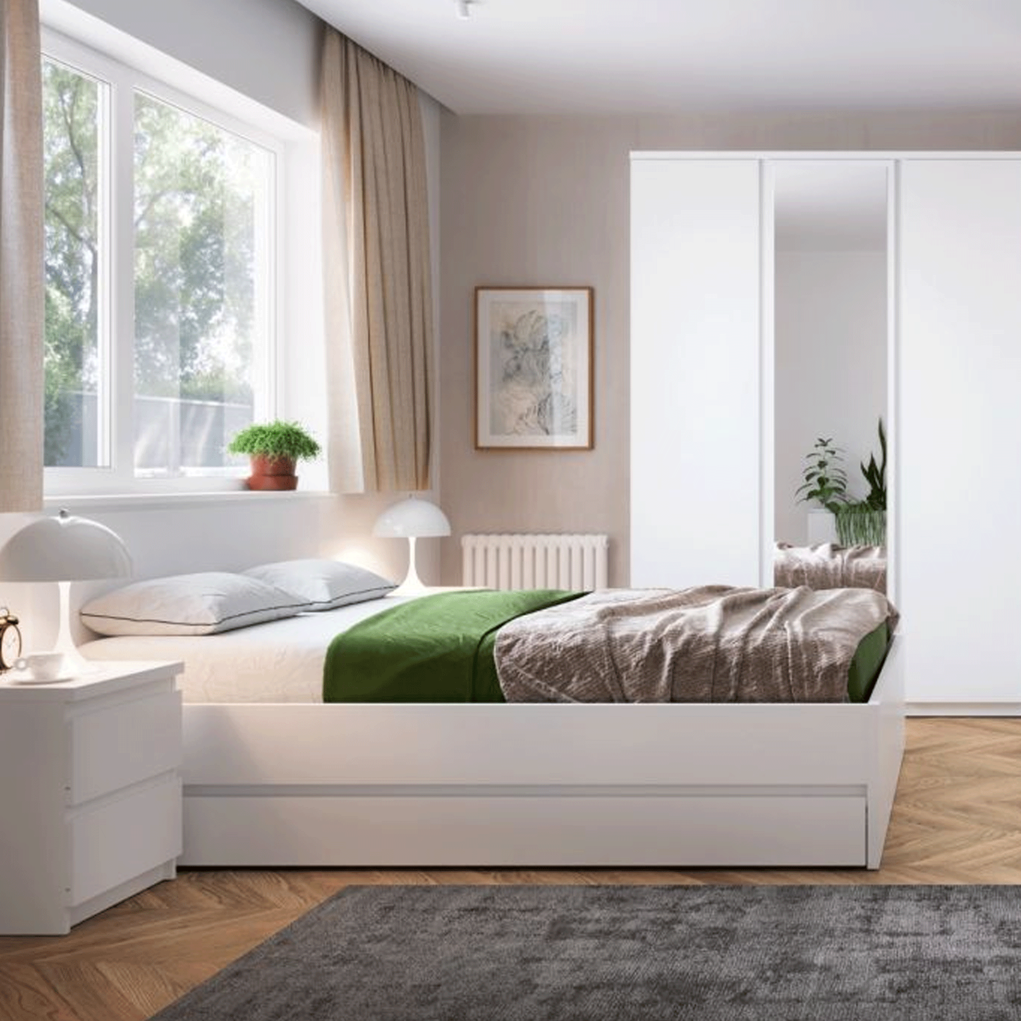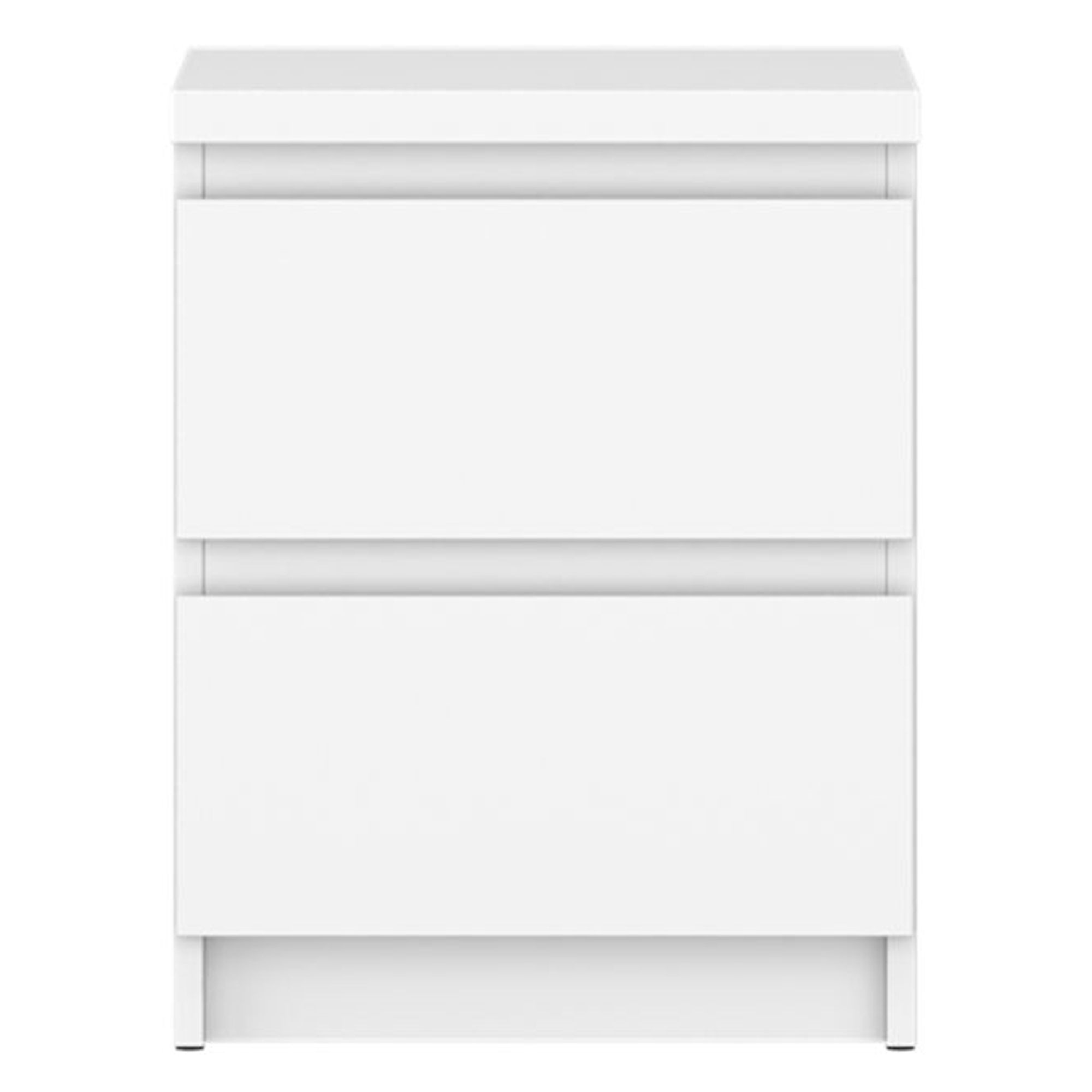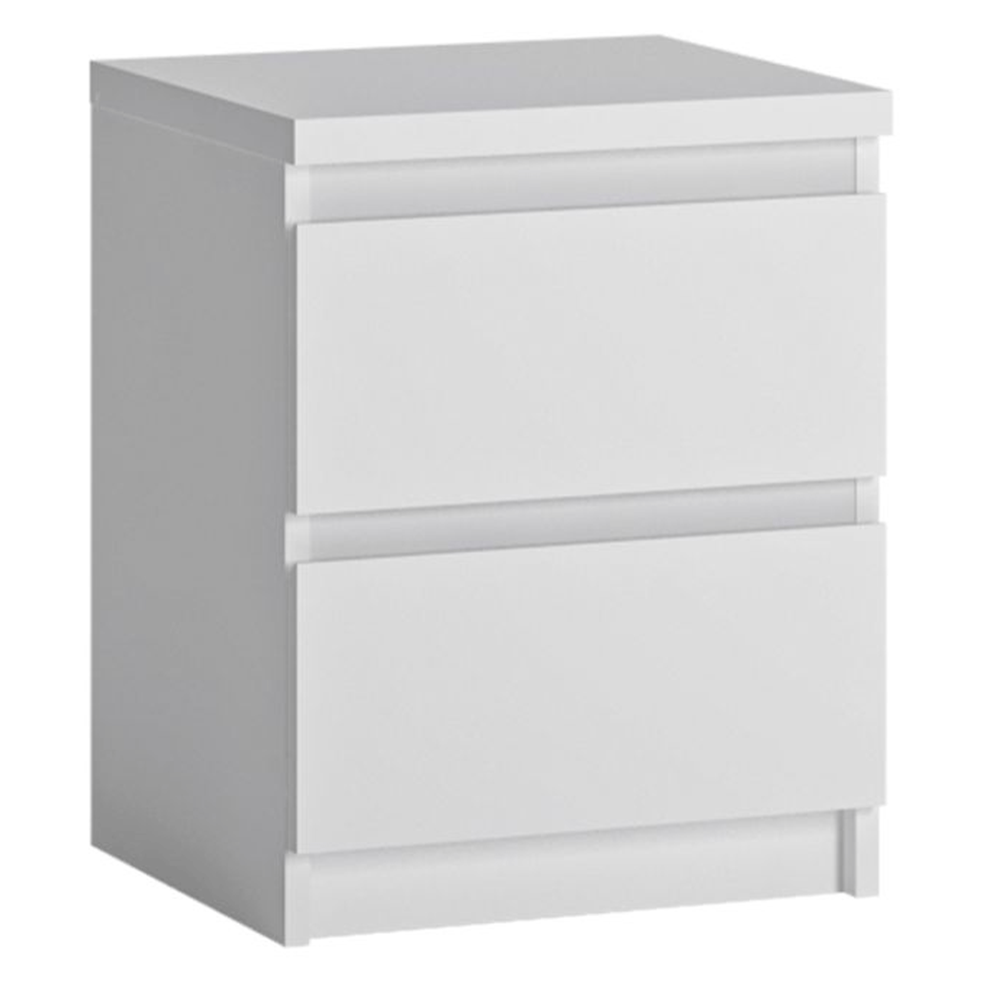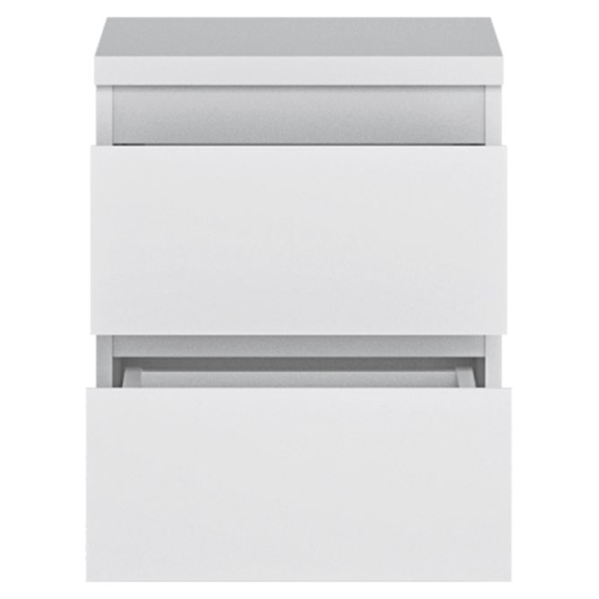 Enhance your bedroom with the FABIA Bedside Table in Alpine White, featuring two spacious drawers for keeping books, glasses, and essentials organised. Its clean, modern finish brightens any room and complements various décor styles, providing a compact yet functional storage solution for night-time essentials.