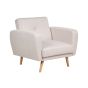 This retro inspired beige armchair offers the perfect blend of functionality and style. Its wide and generously padded seat and adjustable headrest provides extra comfortable seating and sleeping position. The armchair’s elegant design features durable fabric upholstery with a stylish button tufting finish and slanted wooden legs. Details: Color: Beige, Light Wood. Main material: Polyester. Additional material: Rubberwood, Plywood. Material Composition: 100% Polyester Weight: 23 Assembly: Partial Assembly Required Wood type: Hevea brasiliensis Wood Origin: China Weight Capacity: 180 Padding Thickness: 15 Seat Height: 41