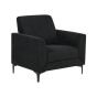 This comfortable, exceptionally stylish chair offers a timeless, classic look paired with a soft, fabric upholstery and metal legs. Perfect for any room - from a retro-inspired interior to a contemporary loft - it instantly creates a favourite relaxation or reading spot and gives every living area a warm, inviting feel, thanks to its deep seats, thick cushions, and wide armrests. Details: Color: Black. Main material: Polyester. Additional material: Metal, Polyester. Material Composition: 100% Polyester Weight: 26 Assembly: Legs to be Fitted Weight Capacity: 180 Padding Thickness: 34 Seat Height: 50