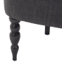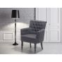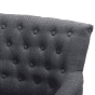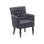 The comfy armchair draws your attention to any interior. The wide, softly padded seat ensures the highest comfort of seating experience. The upholstered chair is covered with a top-notch, grey polyester and has a classic button decoration on the backrest for yet more sophisticated look. The front, narrow legs are beautifully rounded, while the back legs are smooth and slightly leaned. Create a comfortable yet elegant atmosphere in each and every room with this classic piece. Details: Color: Grey, Black. Main material: Polyester. Additional material: Birch Wood, Solid Wood. Material Composition: 100% Polyester Weight: 14 Assembly: Legs to be Fitted Wood type: Betula chinensis Wood Origin: China Weight Capacity: 150 Padding Thickness: 16 Seat Height: 44