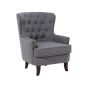 This grandiose wingback armchair is sure to bring an inviting feel to a conversation area, home library or a reading nook. Designed in a classic shape with a high back and winged sides it comes with a thickly padded seat so that you can get comfy and relax. Boasting deep buttoned back and decorative nail heads on the outline the chair timeless style fits right in all modern, as well as traditional settings. Details: Color: Grey, Dark Wood. Main material: Polyester. Additional material: Birch Wood. Material Composition: 100% Polyester Weight: 18 Assembly: Legs to be Fitted Wood type: Betula chinensis Wood Origin: China Weight Capacity: 125 Padding Thickness: 26 Seat Height: 45