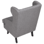 The elegant and comfortable armchair is an excellent enhancement to your living room. Constructed using a solid wood frame and finished with a quality polyester fabric, means the chair looks sophisticated whilst ensuring exceptional durability. A fully upholstered, button decorated seat with recessed arms and high backrest provide stately seating comfort. The chair's classic design makes it a truly timeless piece that is suitable for traditional decors. Details: Color: Grey, Black. Main material: Polyester. Additional material: Rubberwood. Material Composition: 100% Polyester Weight: 19 Assembly: Legs to be Fitted Wood type: Hevea brasiliensis Wood Origin: China Weight Capacity: 150 Padding Thickness: 12 Seat Height: 46
