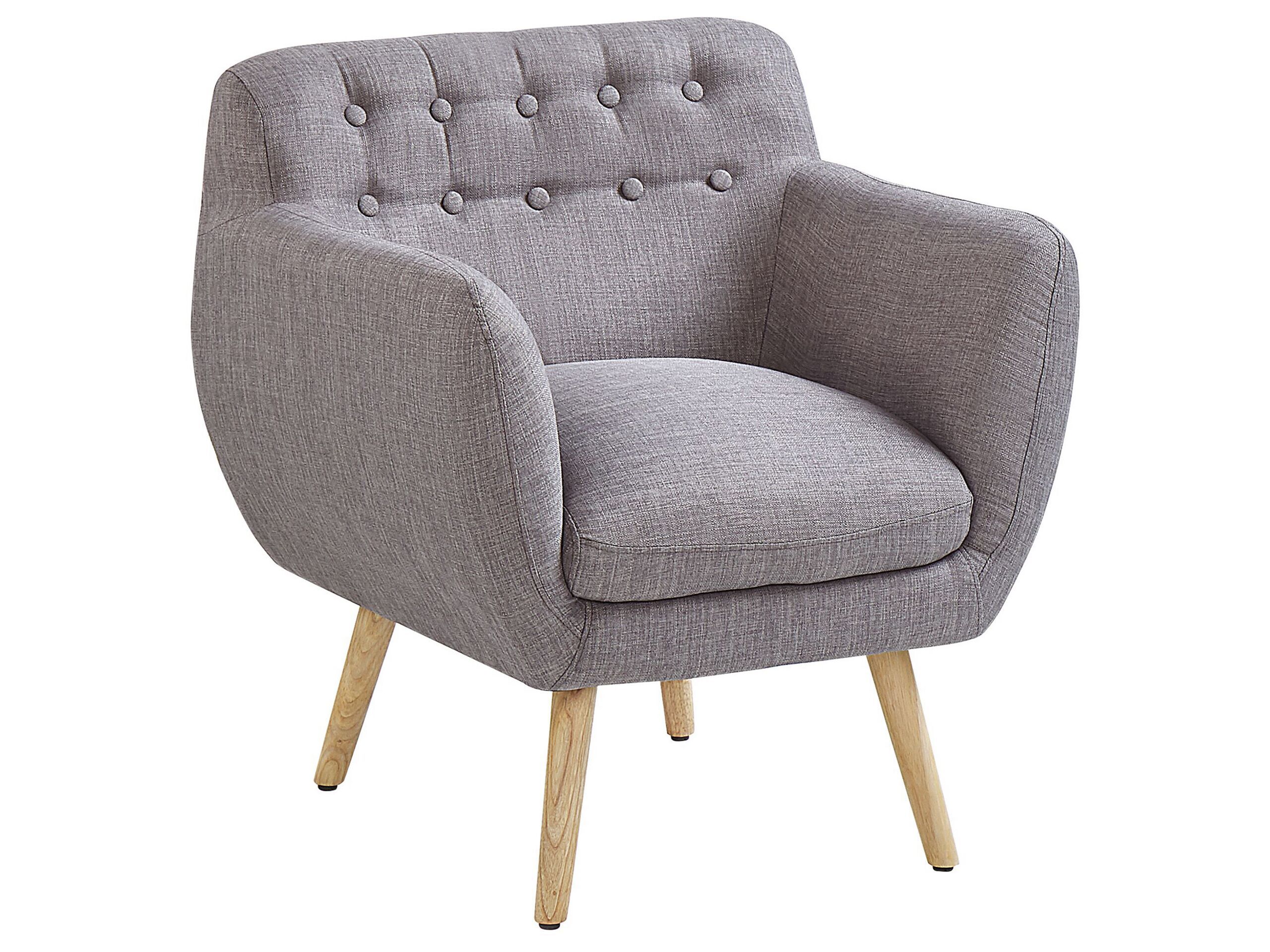 Brighten up your living room interior with the living room accent chair. Crafted with precision using solid rubber wood and top-grade polyester, ensuring sensational quality that lasts for long. The thickly padded, deep seat with button-tufted backrest and high armrest provide absolute seating comfort, making the chair a marvellous relaxation spot, especially suitable for living rooms with mid-century modern or eclectic decors. Details: Color: Grey, Light Wood. Main material: Polyester. Additional material: Rubberwood, Solid Wood. Material Composition: 100% Polyester Weight: 15 Assembly: Legs to be Fitted Wood type: Hevea brasiliensis Weight Capacity: 160 Padding Thickness: 11 Seat Height: 44
